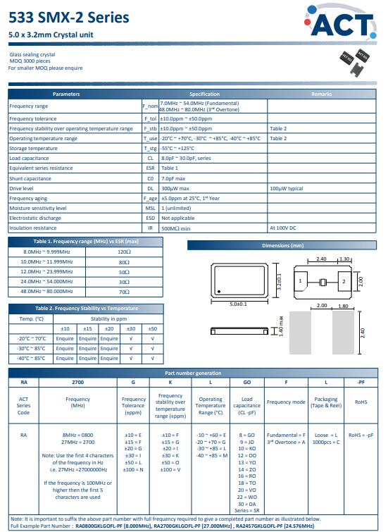 更多>>英國艾西迪晶振,533 SMX-2晶振,5032二腳晶振