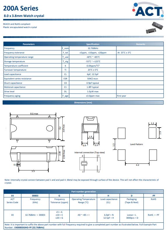 英國ACT晶振,200A晶振,32.768K晶振