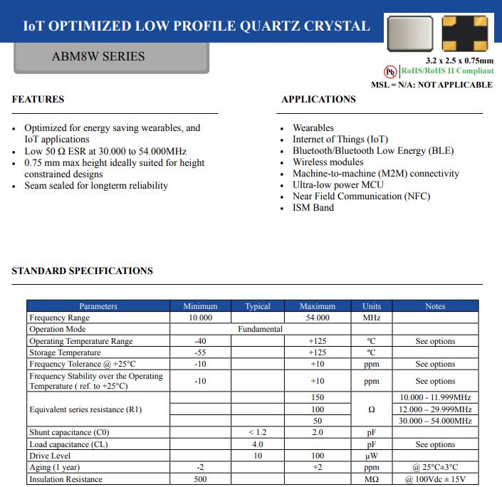 什么使IoT打勾? Abracon晶振的低等效串聯(lián)電阻(ESR)和低負(fù)載電鍍電容(CL)晶體是綠色和節(jié)能MCU和便攜式通信的理想選擇芯片組。 在降低功耗的競爭中,許多片上振蕩器正在被匱乏輸出驅(qū)動,通常不能使用標(biāo)準(zhǔn)晶體維持振蕩。 Abracon的最新系列用于微功率應(yīng)用的石英晶體克服了這些挑戰(zhàn)。