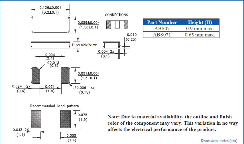 更多>>艾博康晶振,ABS07系列晶振,ABS07-120-32.768kHz-T晶振