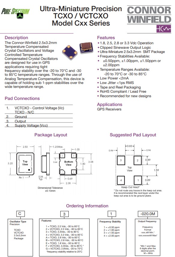 康納溫菲爾德晶振公司全球計時解決方案包括兩個石英晶體操作;一個晶體振蕩器設計制造集團,以及一個專門設計同步時鐘、PLL模塊的定時產品組,以及用于電信和數據通信應用的特殊函數ASICs,以及全球定位系統(GPS)基于同步以太網應用的定時解決方案.康納溫菲爾德晶振公司擁有廣泛的系列產品,比如:晶振,石英晶振, 溫補晶振,石英晶體振蕩器, (PXO)普通晶體振蕩器,(TCXO)溫補晶體振蕩器,(OCXO)恒溫晶體振蕩器等.還包括標準頻率控制裝置,以定制定時、蜂窩和全球定位系統解決方案.