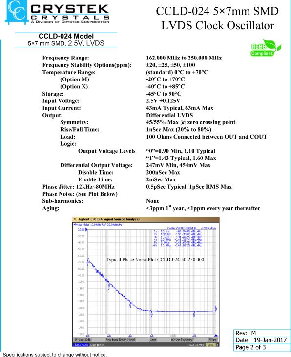 更多>>CCLD-024差分時(shí)鐘振蕩器,瑞斯克晶體,CCLD-024X-50-162.000晶振