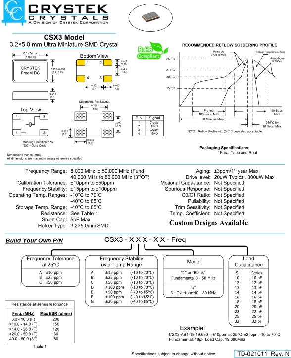 CSX3無源環(huán)保晶體,Crystek美國晶振,CSX3-AB1-18-16.000諧振器