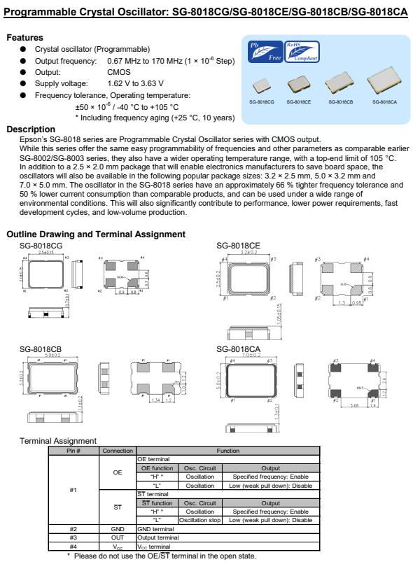 | X1G005601030100 | SG-8018CG | 4.608000 MHz | 2.50 x 2.00 x 0.80 mm | CMOS | 1.620 to 3.630 V | -40 to 105 °C | +/-50 ppm | ≤ 3.5 mA |