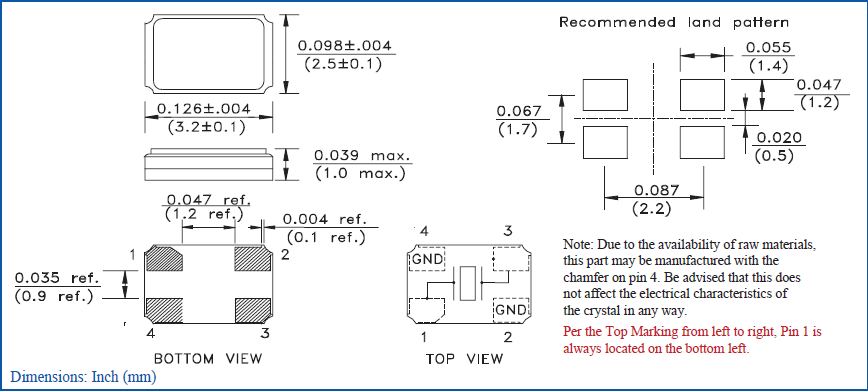 | Type系列: | MHz Crystal | 腳位Termination: | 4-Pad |