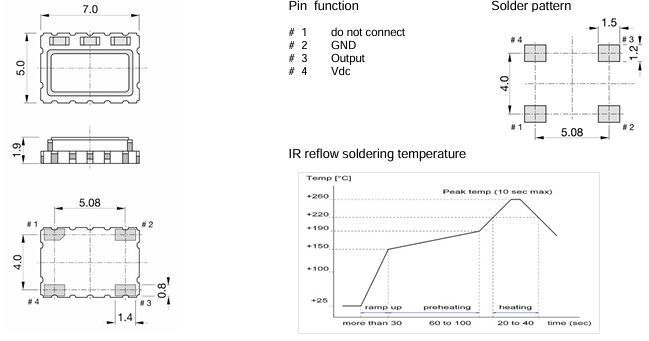 | Size/Dimension尺寸 | 7050四腳貼片晶振 | 最小包裝數MPQ: | 1000 |