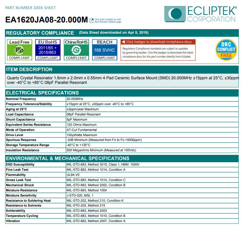 更多>>日蝕晶振,EA1620JA08-20.000M晶振,2016mm晶振