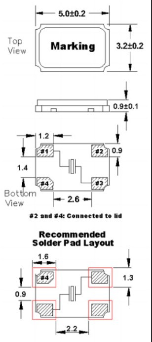 FOX進口晶振,FC5BACBEI32.0-T1,6G無線通信晶振尺寸圖
