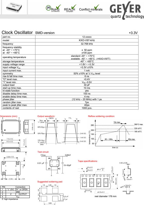 更多>>格耶德國晶振,KXO-V97-kHz石英振蕩器,32.768KHZ有源晶振