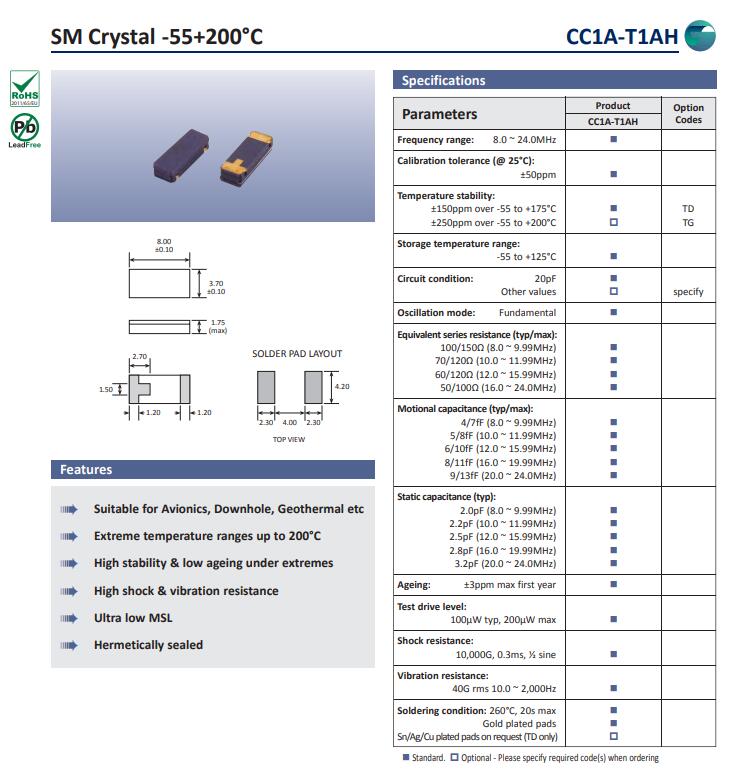 ±150ppm over -55 to +175°C ±250ppm over -55 to +200°C |