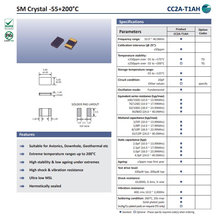 | 頻率溫度特征 | f_tem | ±150ppm over -55 to +175°C±250ppm over -55 to +200°C | 超出標準的規格請聯系我們. | |