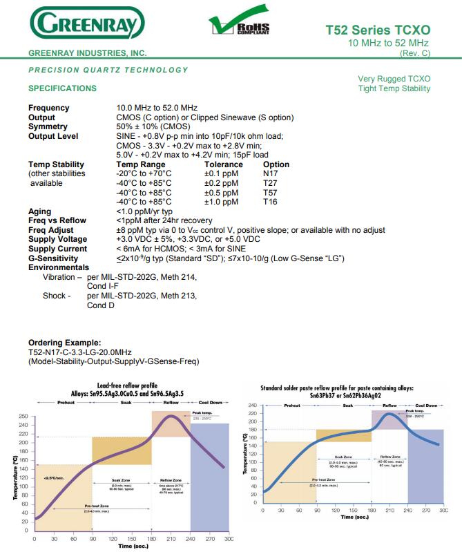 格林雷晶振,T52型號晶振,5032溫補晶振