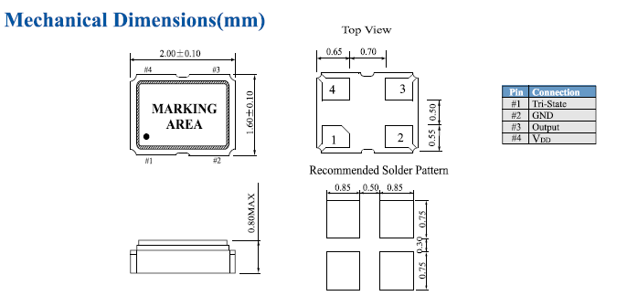 | 頻率老化 | f_aging | ±2× 10-6 / year Max. | +25 ℃, 初年度,第一年 |