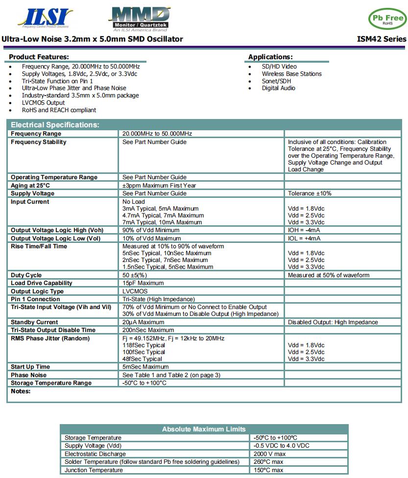 | ILCX13-BB5F10- 49.152 MHz | ILSI | ILCX13 | -40°C ~ 85°C | 49.152 MHz | ±50ppm | 10 pF |