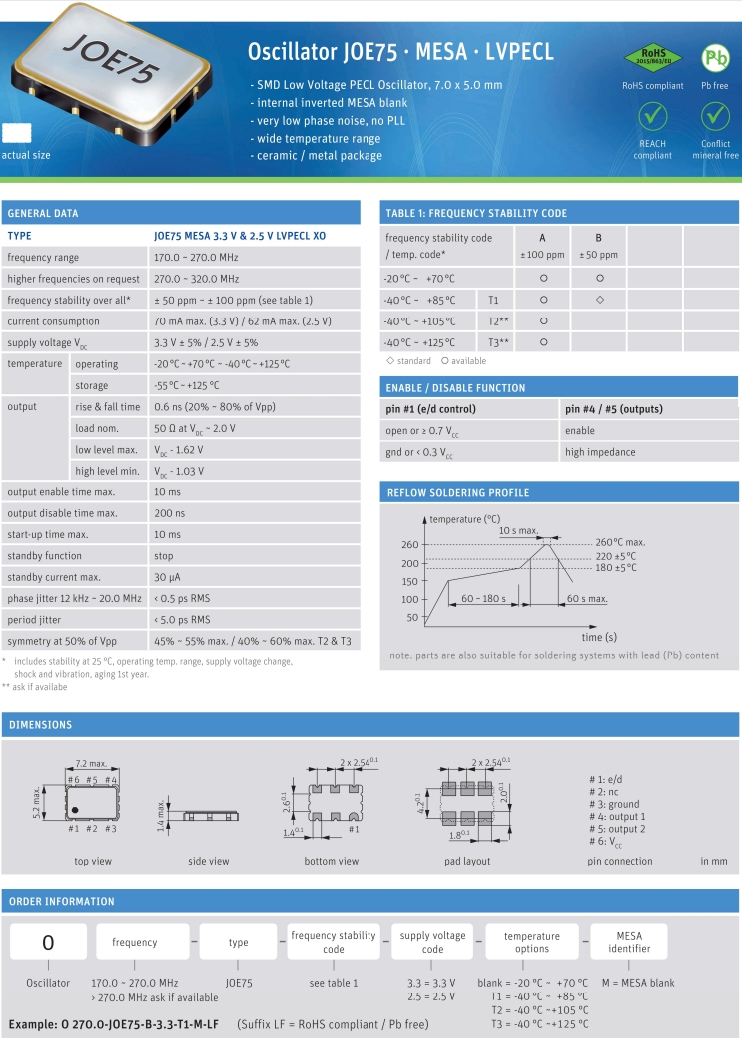 Jauch晶振,O 212.5-JOE75-A-3.3-T3-M-LF,6G信號接收器晶振規格表