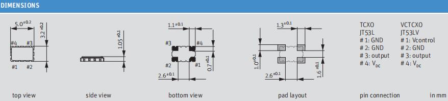 Jauch品牌,O 36.860-JT53LV-B-K-3.0-LF,6G室內路由器晶振尺寸圖