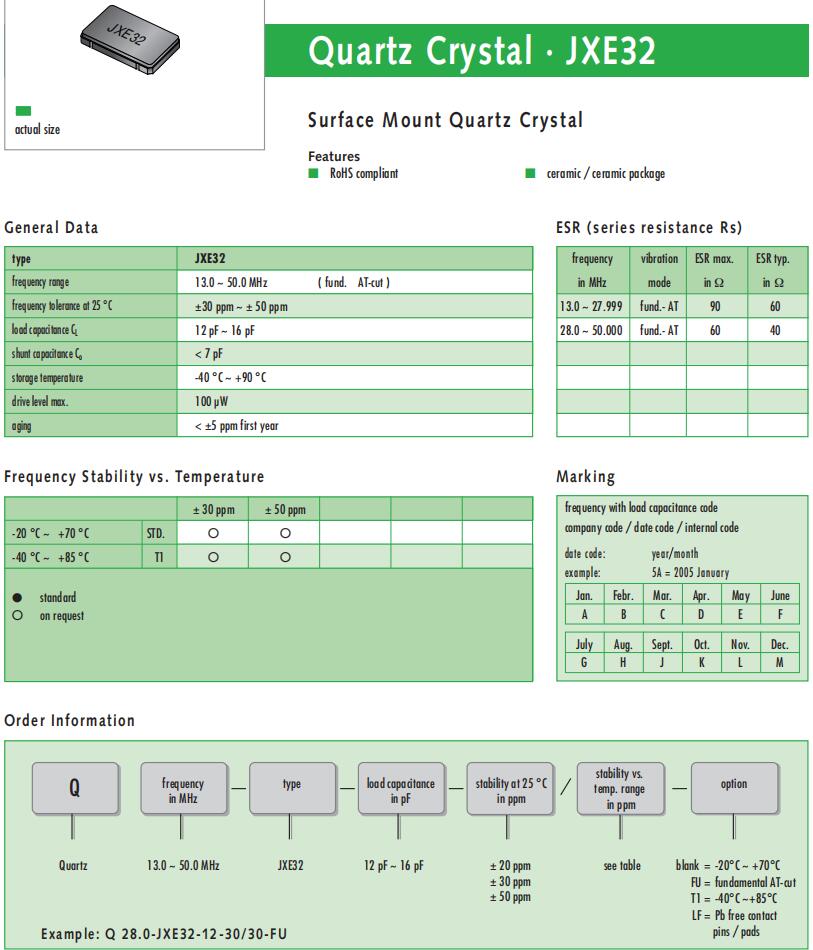 | Q 26.0-JXS22-12-10/10-FU-WA-LF | Jauch晶振 | JXS22-WA | 26MHz | ±10ppm | 12pF | -20°C ~ 70°C |