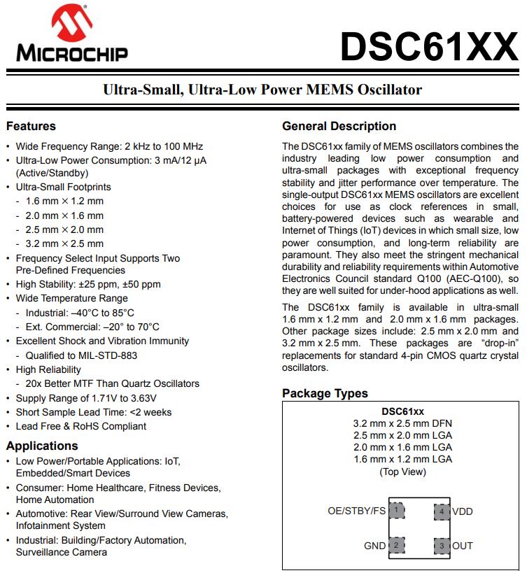 | DSC1124DE1-125.0000T | Microchip Technology | DSC1124 | 125MHz | 2.25 V ~ 3.6 V | 0.098" L x 0.079" W (2.50mm x 2.00mm) |