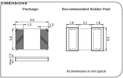 CC2A-T1AH-26.000MHz-20.0pF-50ppm-TC-QI,5032mm晶振,6G以太網晶振尺寸圖