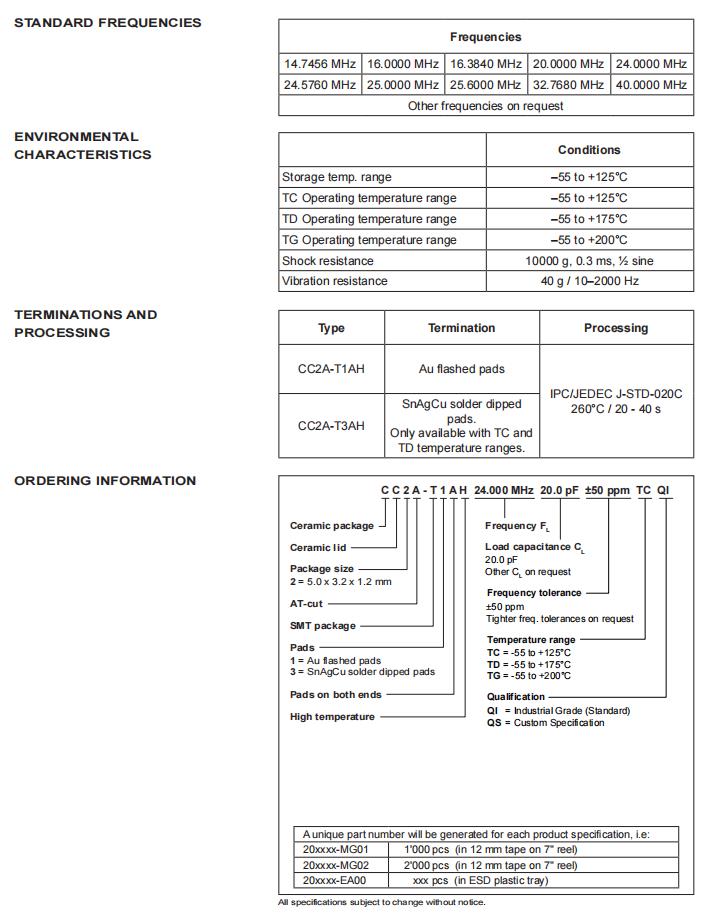 CC2A-T1AH-26.000MHz-20.0pF-50ppm-TC-QI,5032mm晶振,6G以太網晶振,瑞士微晶晶振,CC2A-T1AH無源晶振,CC2A-T1AH-26.000MHz-20.0pF-50ppm-TC-QI晶振,石英晶體諧振器,頻率26MHz,負載20pf,頻率穩定性50ppm,工作溫度-55~125°C,5032mm晶振,耐高溫晶振,低老化晶振,6G以太網晶振,光學網絡晶振,機載設備晶振,地熱設備晶振,無線電通信設備晶振.