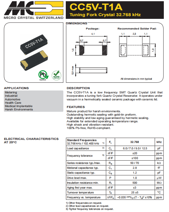 | CC1V-T1A-32.768kHz-9pF-30PPM-TC-QC | Micro Crystal | 晶體 32.768 kHz 9.0 pF +/-30 PPM -55/+125C |