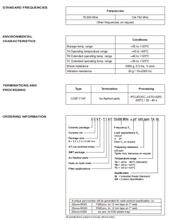 CC6F-T1AF-80.000MHz-10.0pF-20ppm-TA-QI,6G路由器晶振,高穩定性晶振規格表