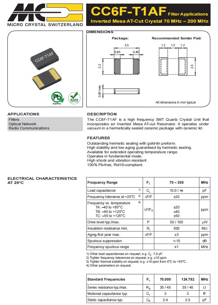 CC6F-T1AF-80.000MHz-10.0pF-20ppm-TA-QI,6G路由器晶振,高穩定性晶振,瑞士微晶晶振,CC6F-T1AF無源晶振,CC6F-T1AF-80.000MHz-10.0pF-20ppm-TA-QI晶振,石英晶體諧振器,3522mm晶振,進口SMD晶振,頻率80MHz,負載10pf,頻率穩定性20ppm,工作溫度-40~85°C,低老化晶振,高穩定性晶振,6G路由器晶振,濾光器晶振,光學網絡晶振,無線電通信晶振.