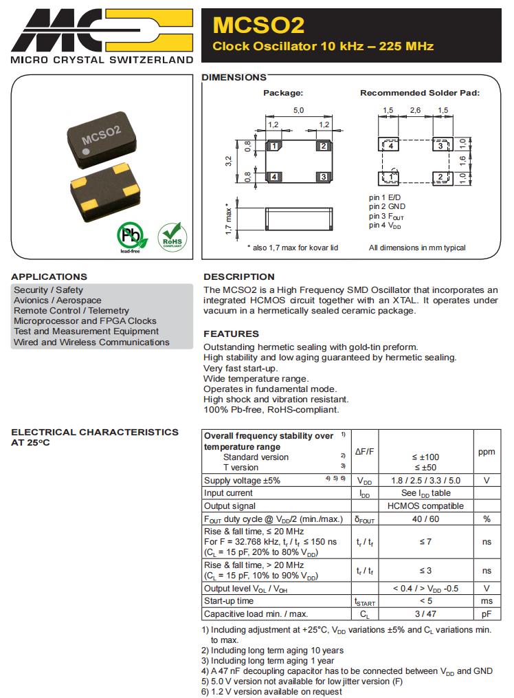 | OV-0100-C7-100.000kHz-50PPM-TA-QC | Micro Crystal | 標準時鐘振蕩器 100.0 kHz +/-50 PPM -40/+85C |