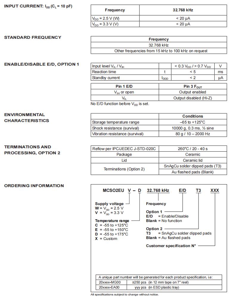 MCSO2EUV-D-32.768kHz-E/D-T3,5032mm晶振,6G基站晶振規格表