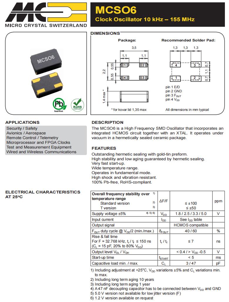| OM-7604-C7-32.768kHz-20PPM-TB-QC | Micro Crystal | 標準時鐘振蕩器 32.768 kHz +/-20 PPM -40/+125C |