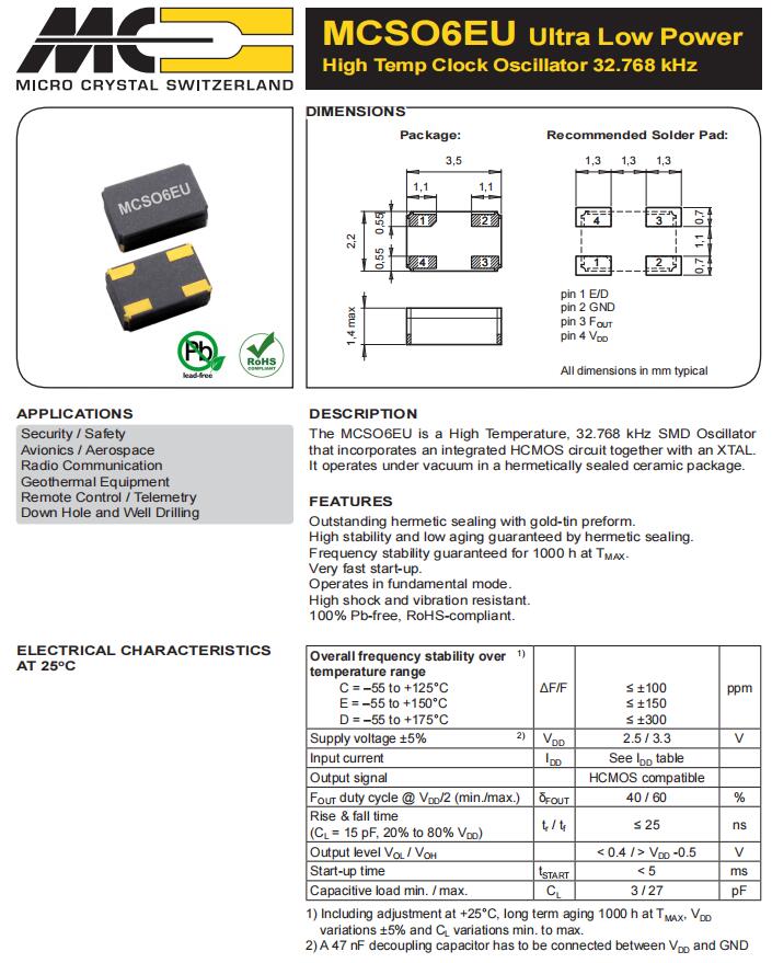 | OV-7604-C7-32.768k-10PPM-TB-QA | Micro Crystal | 標(biāo)準(zhǔn)時鐘振蕩器 32.768 kHz +/-10 PPM -40/+125C AEC-Q200 |