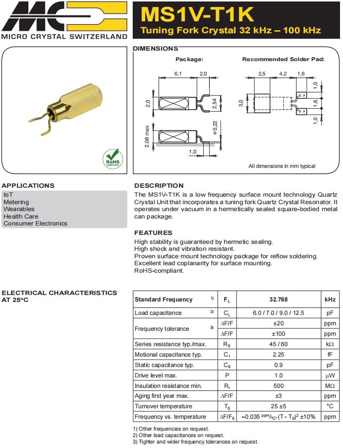 | MS1V-T1K-32.768kHz-6pF-20PPM-TA-QC-Au | Micro 晶振 | 晶體 32.768 kHz 6.0 pF +/-20 PPM -40/+85C | Crystals |