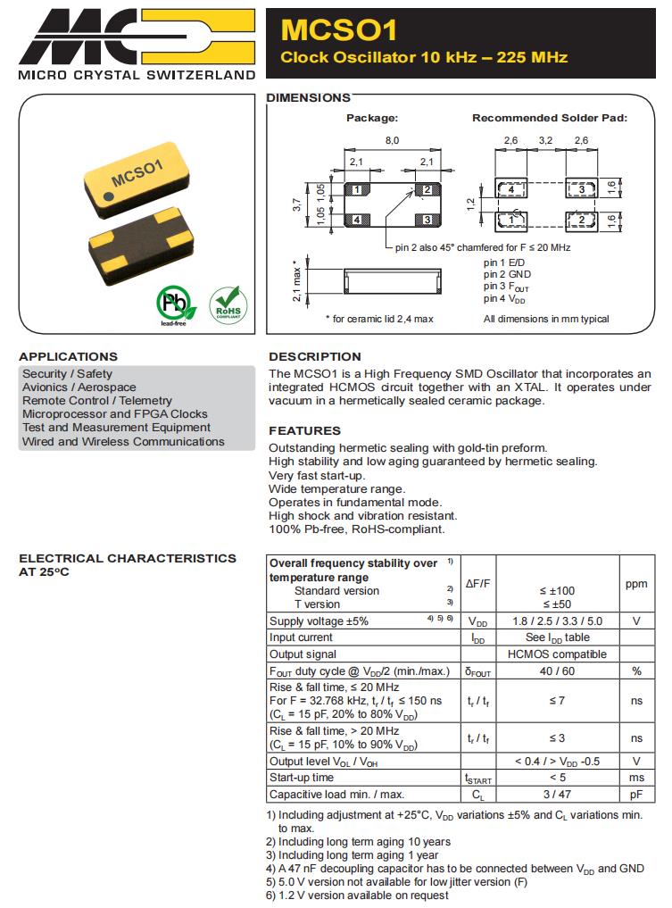 | OV-0100-C7-100.000kHz-50PPM-TA-QC | Micro Crystal | 標準時鐘振蕩器 100.0 kHz +/-50 PPM -40/+85C |