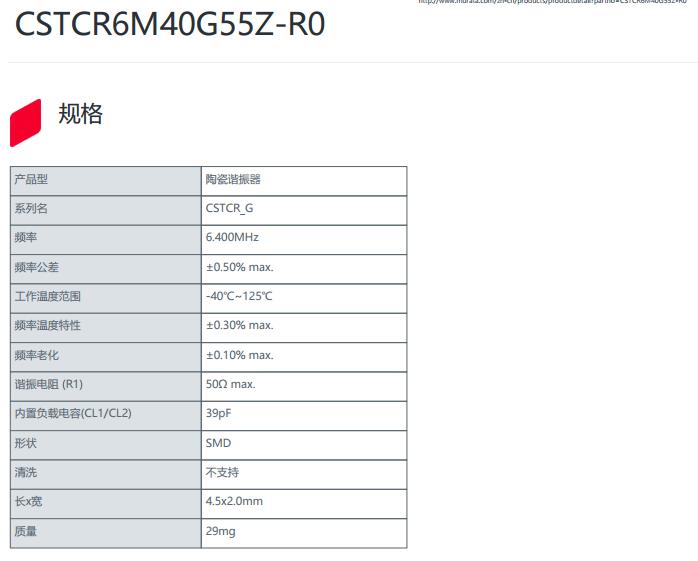 更多>>進口MURATA晶振,CSTCR-G晶振,CSTCR6M40G55Z-R0晶振