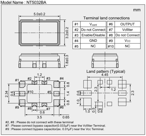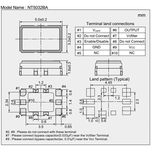 | NDK晶振 | 標示 | NT5032BA晶振 | 晶振基本信息對照表 |
