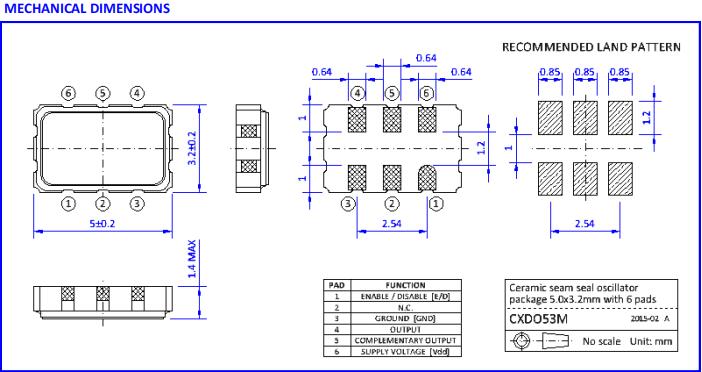 ●SMD封裝尺寸為5.0 x 3.2 x 1.2mm,帶有6個襯墊