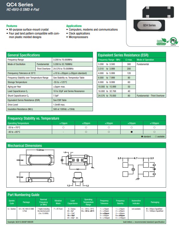 更多>>康泰克晶振,QC4晶振,HC-49/U-SMD晶振