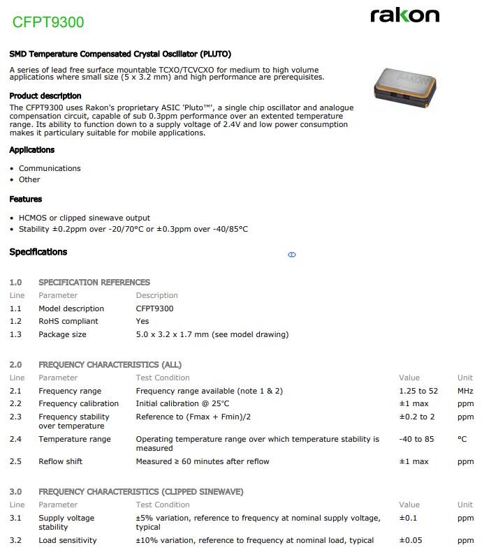 RAKON晶振,CFPT9300晶振,5032溫補晶振