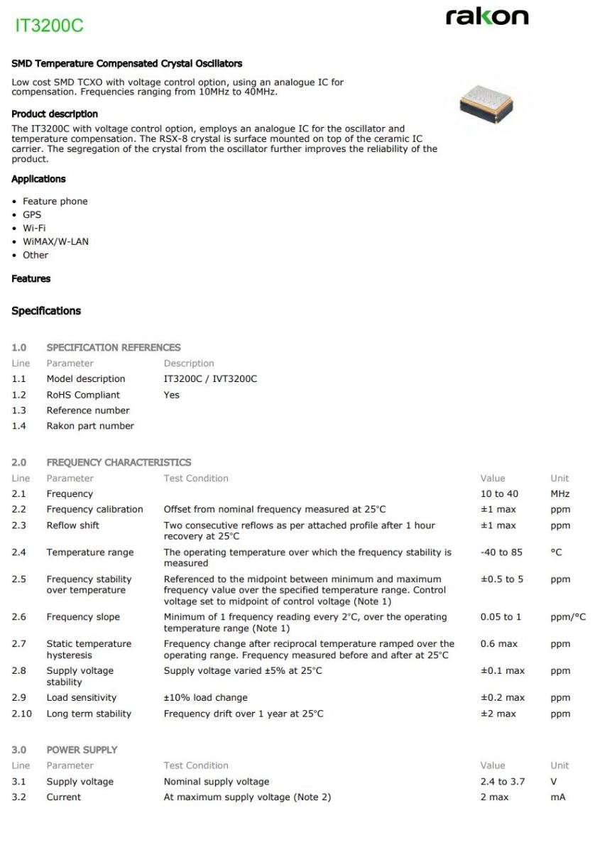 | 型號 | IT3200C (TCXO) | |