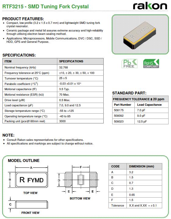 | Frequency | 32.768KHZ |