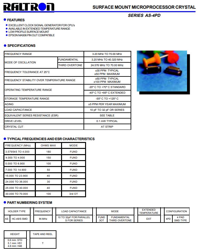 美國Raltron晶振,AS-4PD晶振,石英晶振