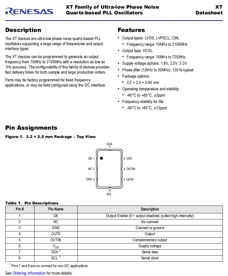 | XTL332125.000000I | Renesas Electronics America Inc | XT | 125 MHz | LVDS | 3.3V | ±3ppm |