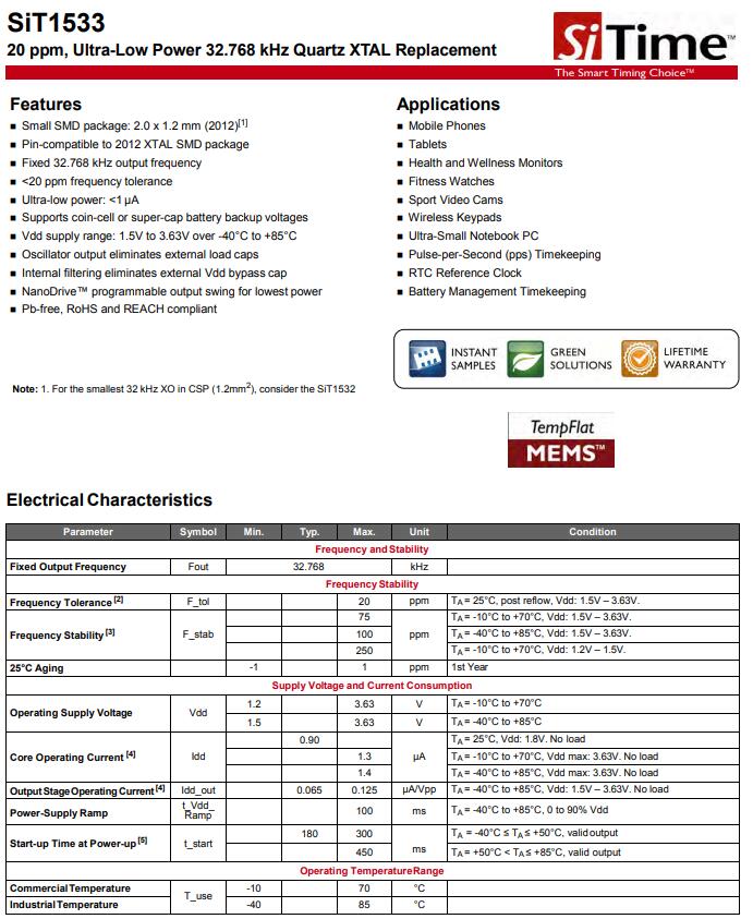 采用對環境盡可能健康的生產工藝,SiTime晶振,SiT1533晶振,2012有源晶振