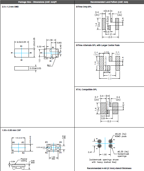 | Frequency Tolerance | 20 ppm | TA = 25°C, post reflow, Vdd: 1.5V – 3.63V. |