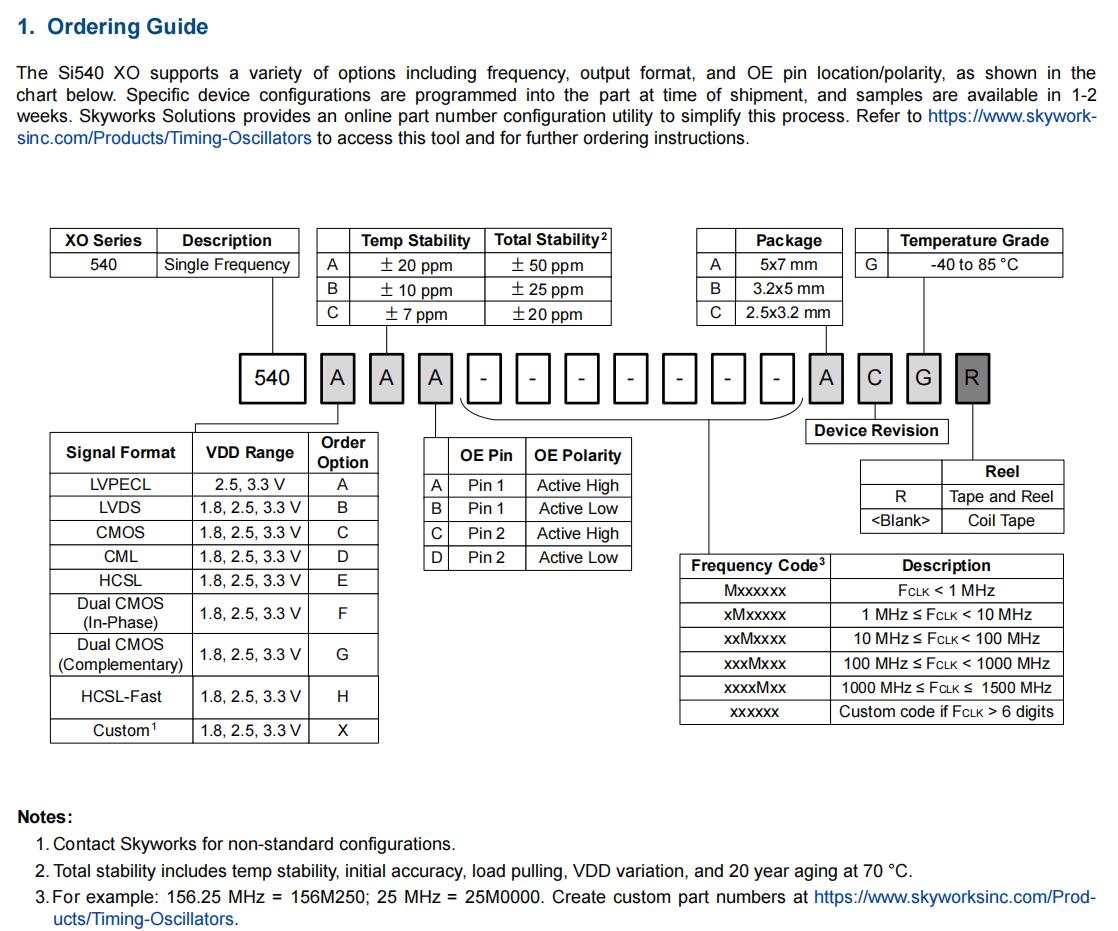 | 540EAA100M000BBG | Skyworks Solutions Inc. | Ultra™ Si540 | 100 MHz | HCSL | 1.8V, 2.5V, 3.3V | ±20ppm |