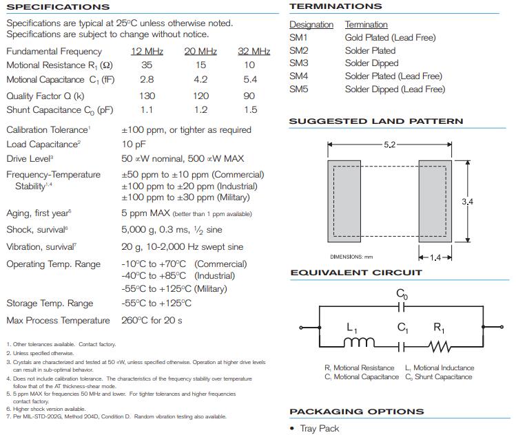 Statek石英晶體振蕩器低消耗低電流只需3.2~2.5mm,頻率范圍從20MHZ~50MHZ可供選擇,電壓范圍在1.8V~3.3V之間,在產品中使用的工作溫度范圍廣-55°C+125°C.并且具有超強的耐沖擊性能,可用于軍工產品,軍事領域.
