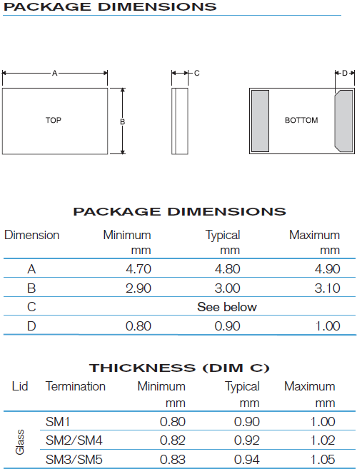 | 激勵功率 | DL | 200μW Max. | 推薦:1μW ~ 100μW |