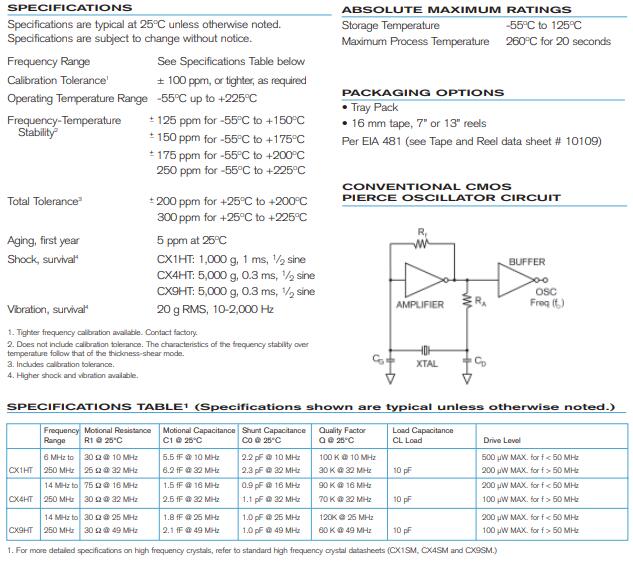 | Statek晶振規(guī)格 | 單位 | CX1HT貼片晶振頻率范圍 | 石英晶振基本條件 |