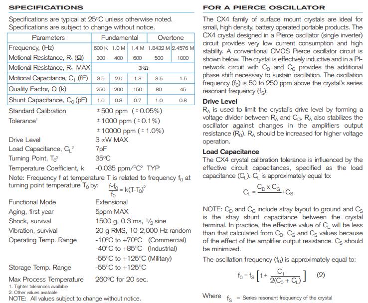 | Statek晶振規格 | 單位 | CX4貼片晶振頻率范圍 | 石英晶振基本條件 |