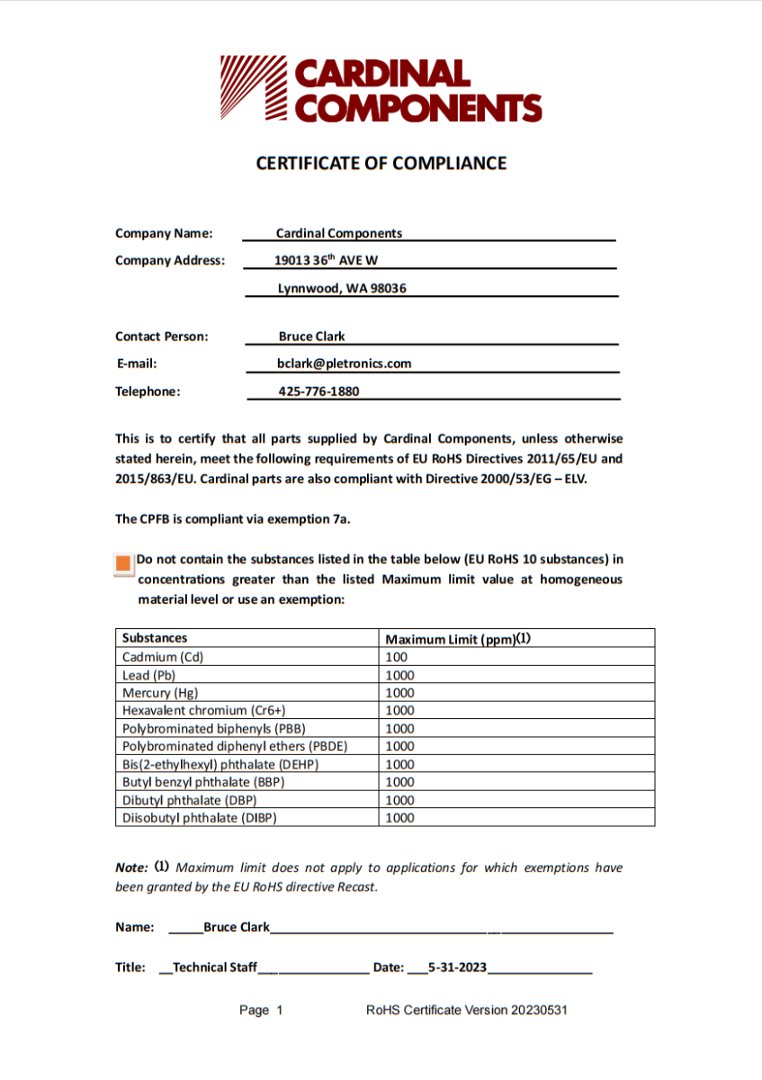 除非本協(xié)議另有說明,否則基本部件提供的所有部件均符合歐盟RoHS指令2011/65/EU和2015/863/EU的以下要求。基本部件也符合指令2000/53/EG-ELV。Cardinal晶振不含下表所列物質(zhì)(EU RoHS 10物質(zhì))的濃度大于均質(zhì)材料水平上所列的最大限值。